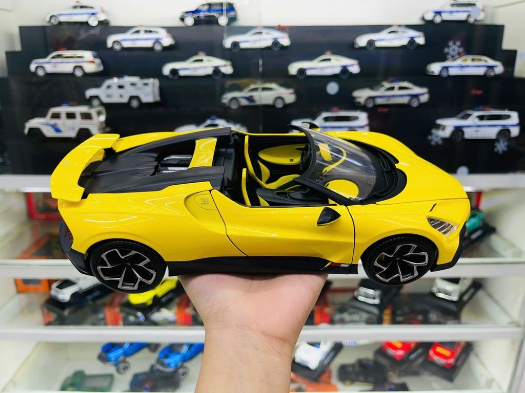 Mô hình xe Bugatti Mistral Yellow open top full open - đánh lái được tỉ lệ 1:18 Bburago18-11051 OT18008