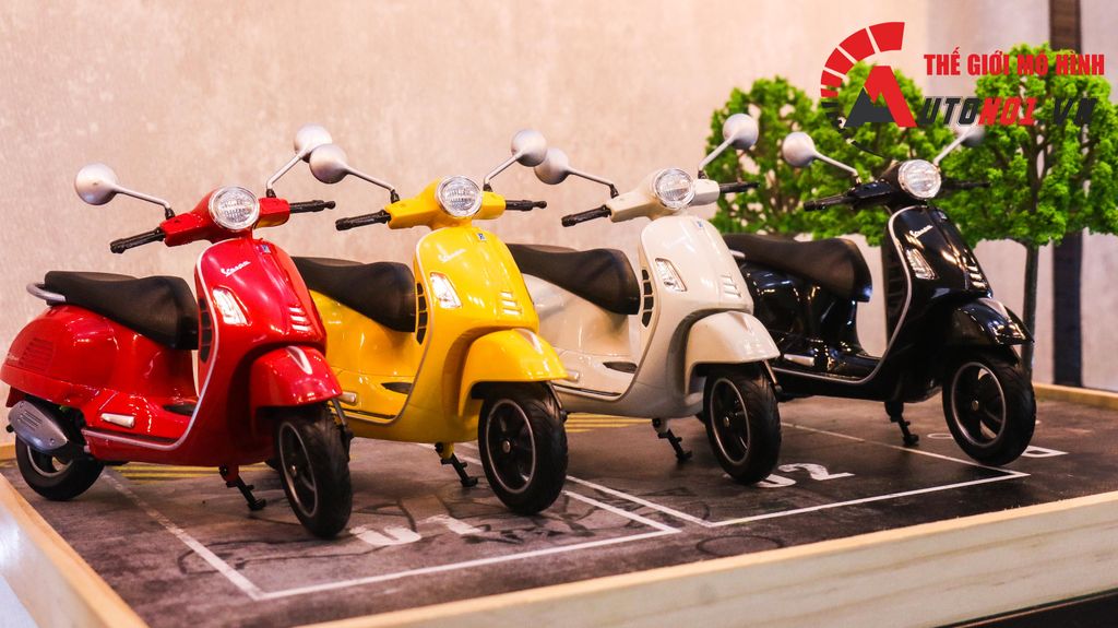 Chiếc xe tay ga VESPA GTS SUPER 2020 1:12 có 4 màu: BLACK, WHITE, RED, YELLOW